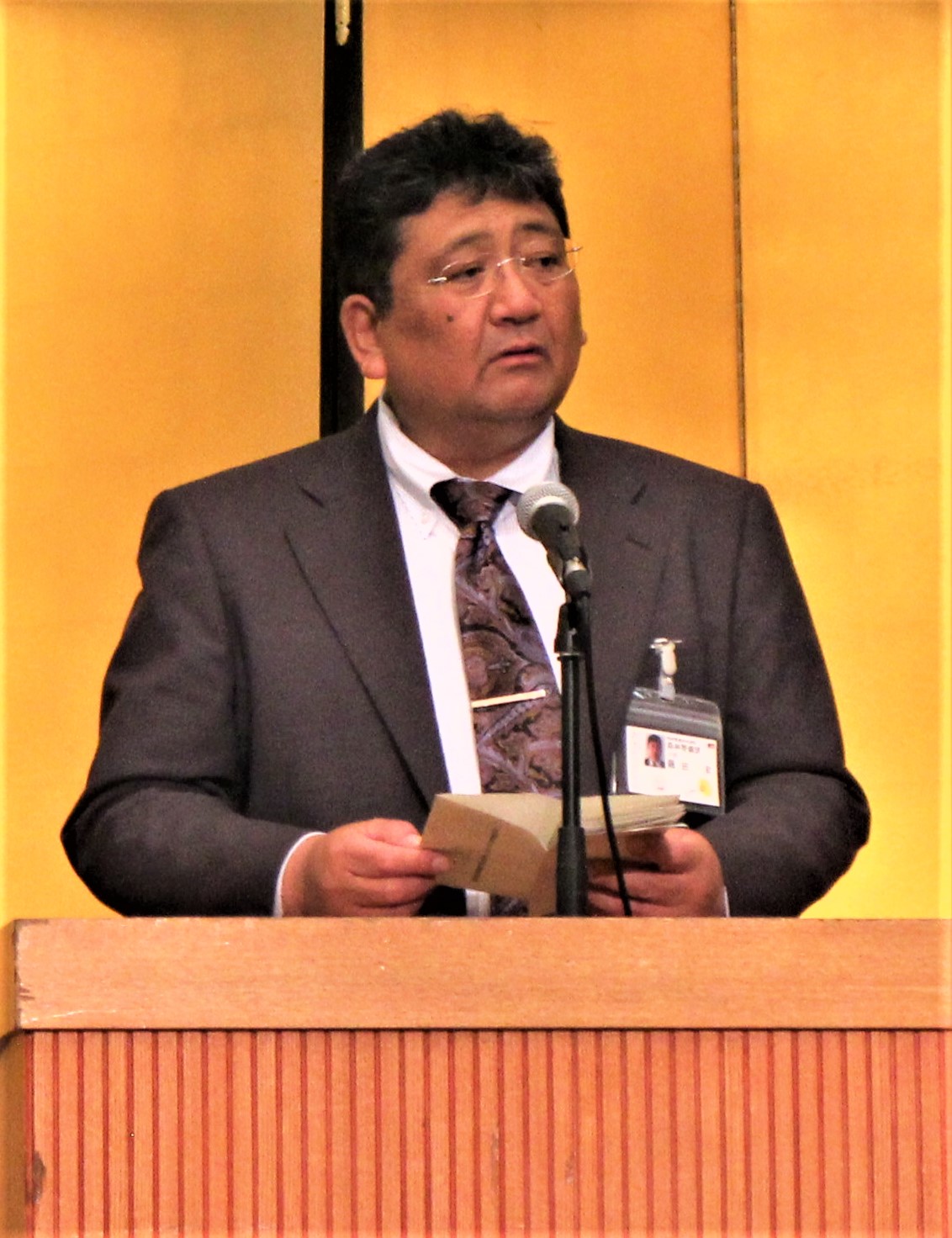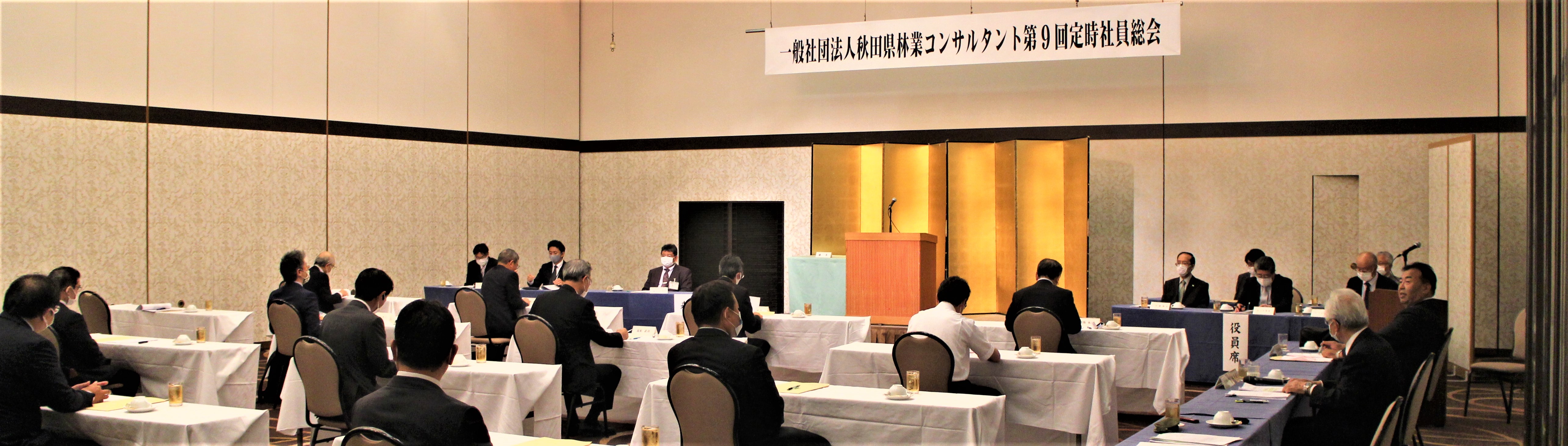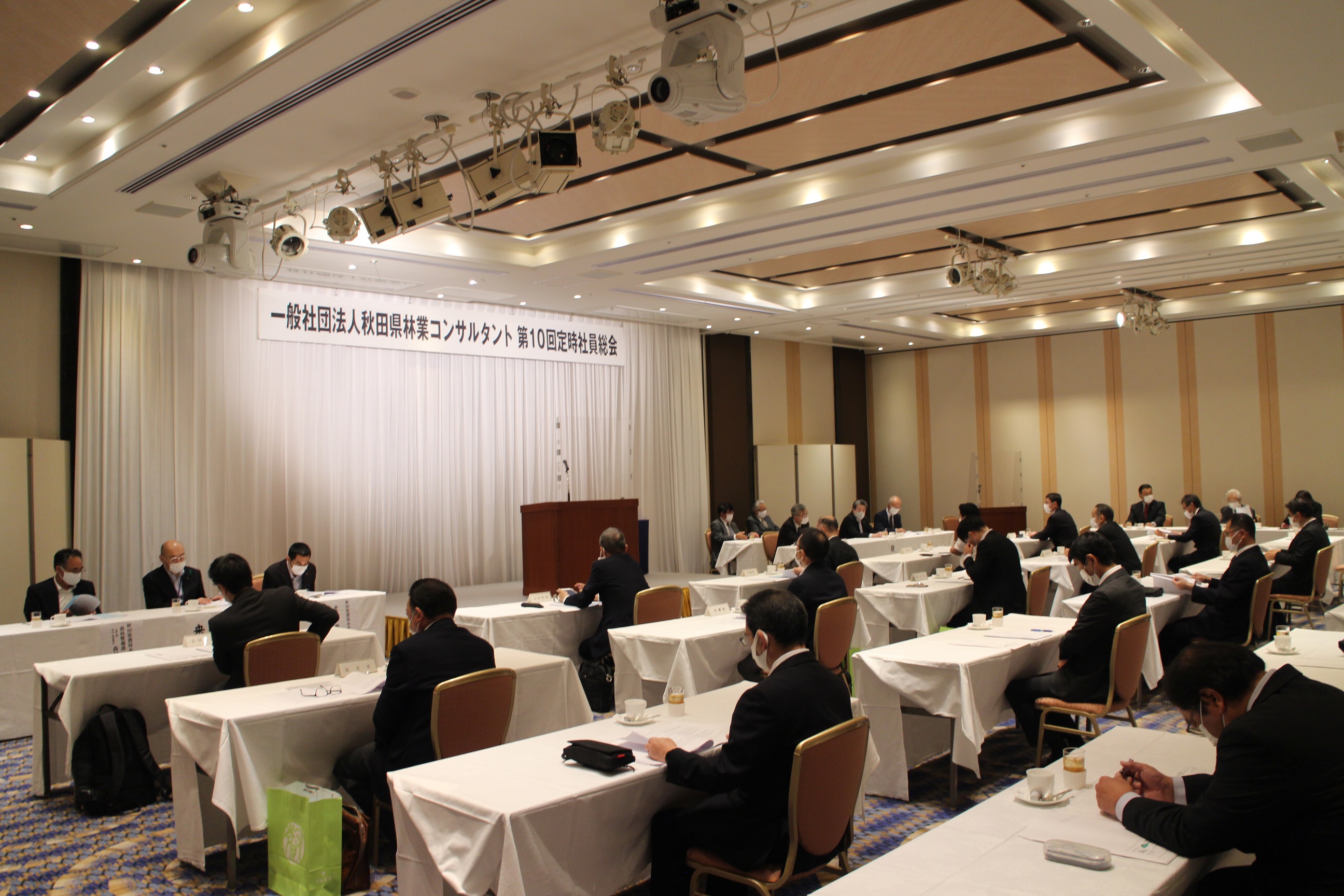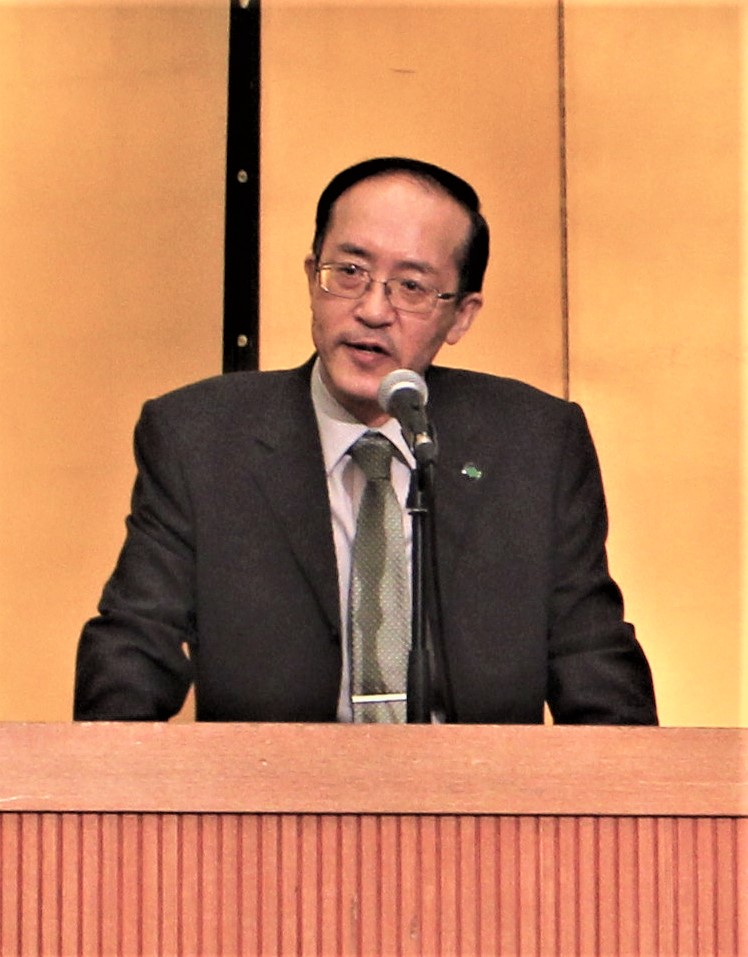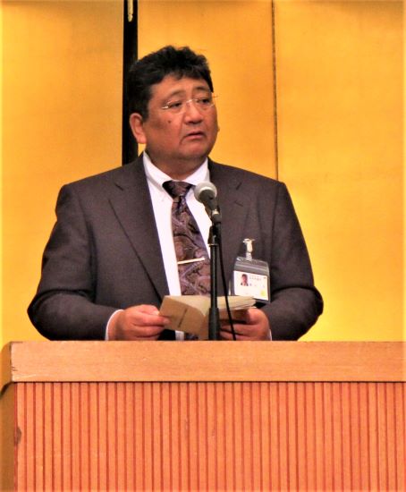 また、来賓の祝辞として、秋田県農林水産部の嶋田理森林技監からは、「県が実施する治山林道工事に関する調査・測量をはじめ、災害発生時における市町村への支援、公益事業を通じた地域への貢献、ドローンを活用した山地災害や松くい虫・ナラ枯れ被害の調査に取り組まれていることに敬意を表する。国では、カーボンニュートラル及びグリーン社会の実現に向け、間伐やエリートツリー等の再造林による中長期的な森林吸収量の確保・強化を図るとともに、国土強靭化のための3カ年緊急対策に続き、今年度からは5カ年加速化対策により、集中的に荒廃山地の復旧・予防対策や林道の開設・改良等を行うこととしている。県としては、このような国の予算を活用し、県民の安全・安心を確保するための治山工事を推進するとともに、本県の林業成長産業化に向けて、スギ人工林資源を効率的に活用するための路網の整備・機能強化に努めていく。特に、路網整備については、今年度から高能率生産団地以外の路網の充実も図るため、市町村が実施主体となる事業を新たに創設した。貴法人においては、長年培ってきた高い技術力を発揮するとともに、先端技術の導入にも積極的に取り組んで、本県の森林・林業にイノベーションをもたらしてもらいたい」との挨拶をいただきました。