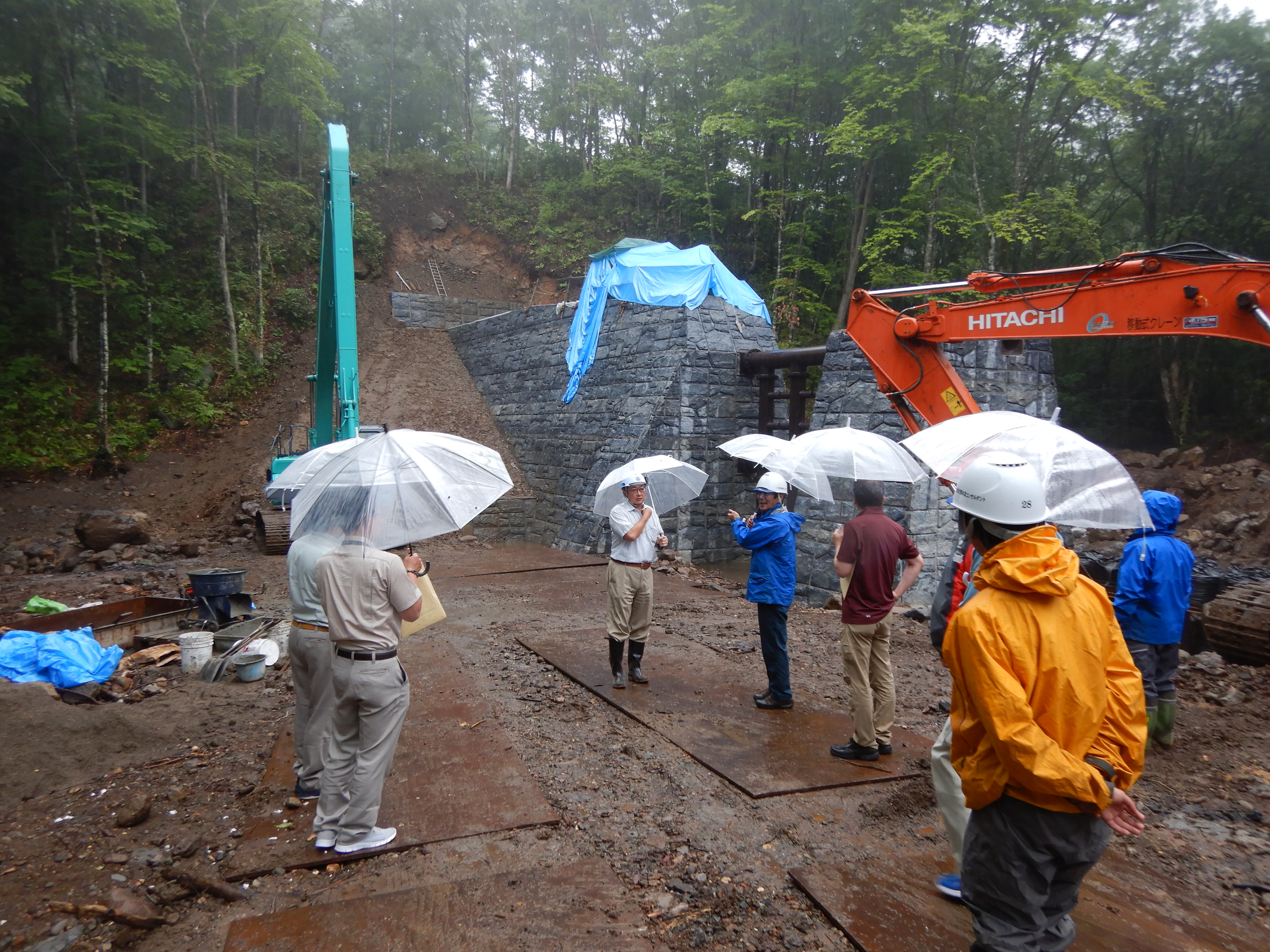 現地では、国立公園内であることから、景観に配慮した化粧型枠や在来種による緑化工についての質疑などが活発に行われました。
